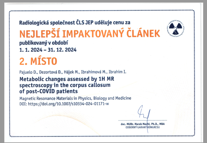 Na letošním, 46. Českém radiologickém kongresu v Olomouci ve dnech 21. - 23. 9. 2025 zaznamenali členové našeho týmu významné úspěchy.